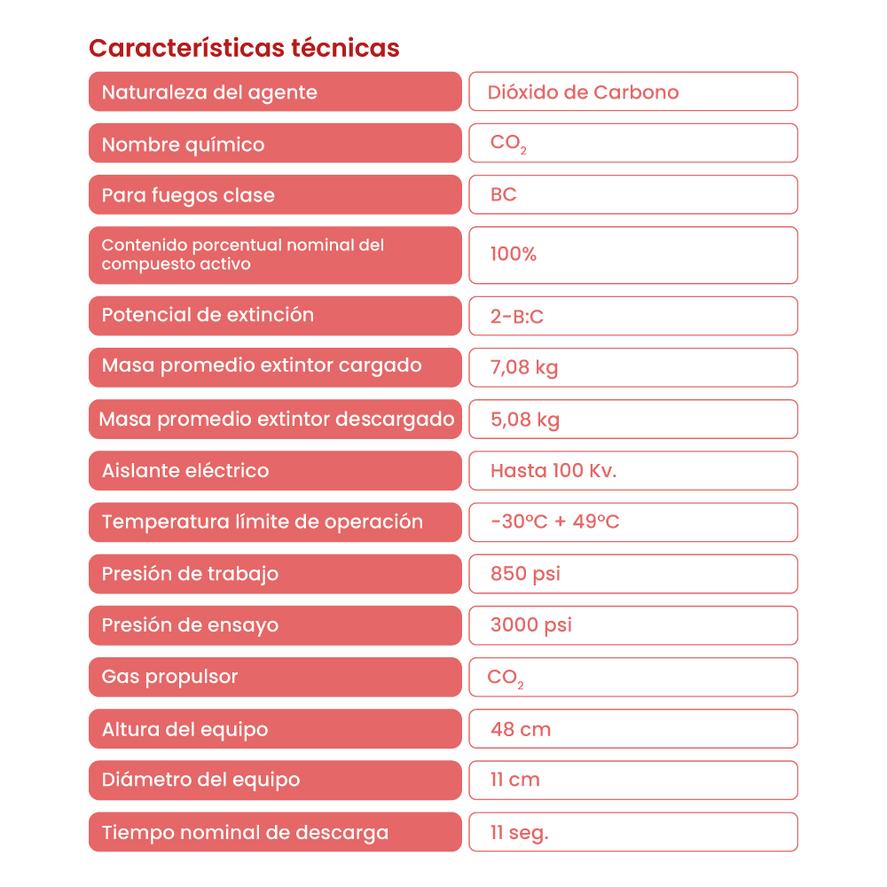 • Capacidad: 2 kilos de dióxido de carbono (CO2).